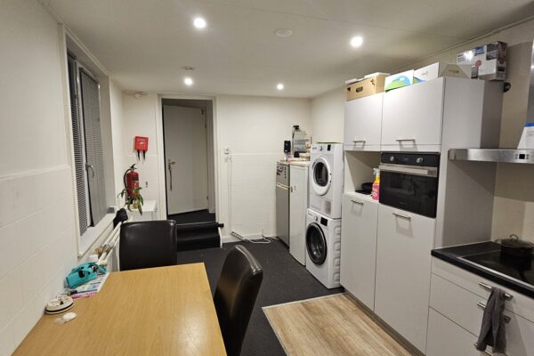 In deze ruimte staat ook een wasmachine en wasdroger.